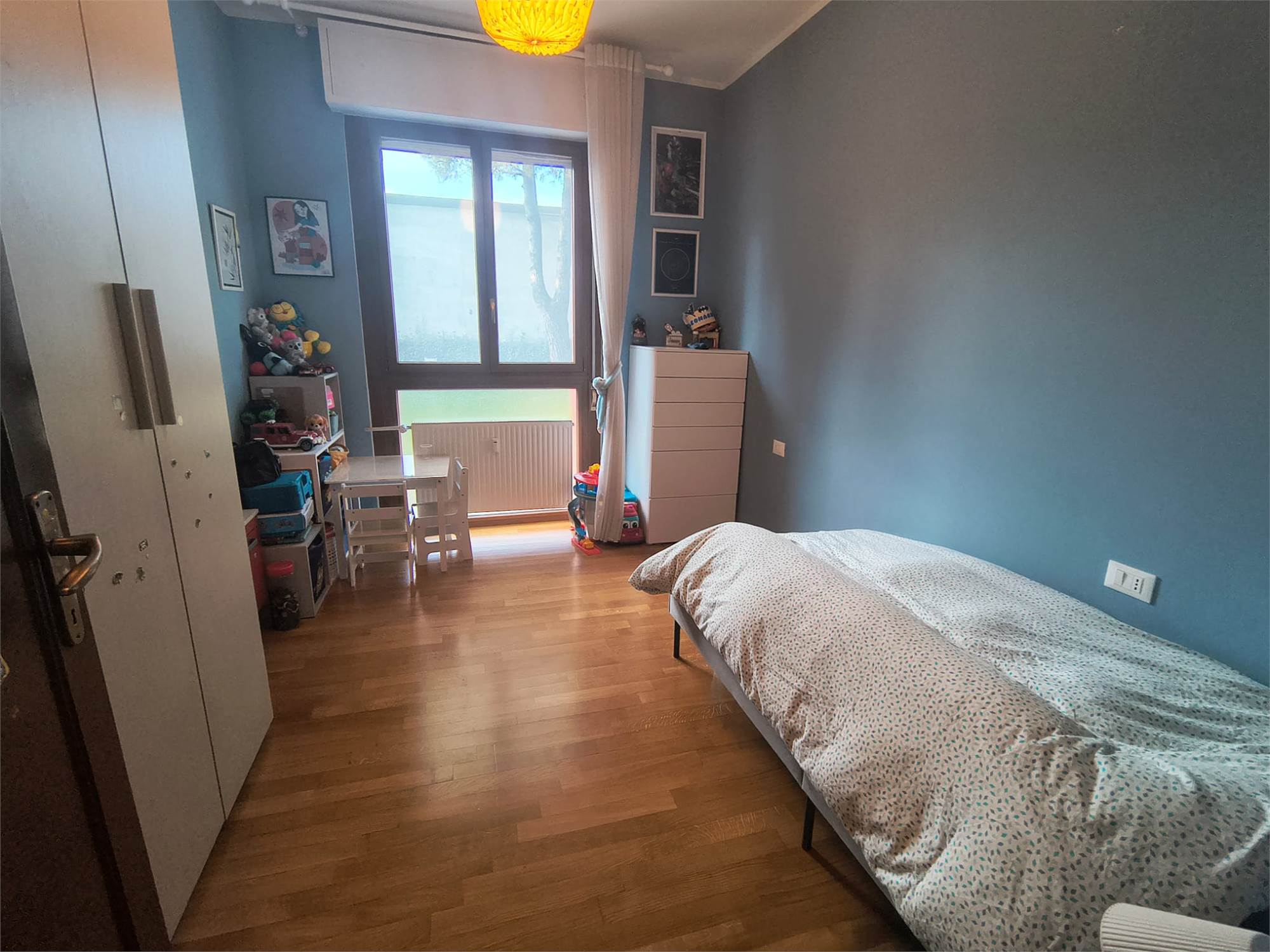 In zona tranquilla ed a ridosso del centro, inserito in un tranquillo contesto con ampio giardino condominiale proponiamo in vendita un luminoso e spazioso appartamento di mq.125 situato al 1° piano di una piccola palazzina. La soluzione è così suddivisa, ampio ingresso, soggiorno di ampie dimensioni che affaccia su un terrazzino, cucina abitabile con balcone, 3 camere con altri due balconi, due bagni entrambi finestrati. La pavimentazione è tutta in parquet, i due bagni sono stati ristrutturati e sono stati sostituiti tutti gli infissi esterni e la caldaia della palazzina è stata recentemente sostituita (novembre 2025).Completano la proprietà una cantina, un ampio box singolo dove davanti è possibile avere un posto auto condominiale, ed un locale deposito di mq.30 che potrebbe essere utilizzato come taverna, locale Hobby/Ufficio o ulteriore box.